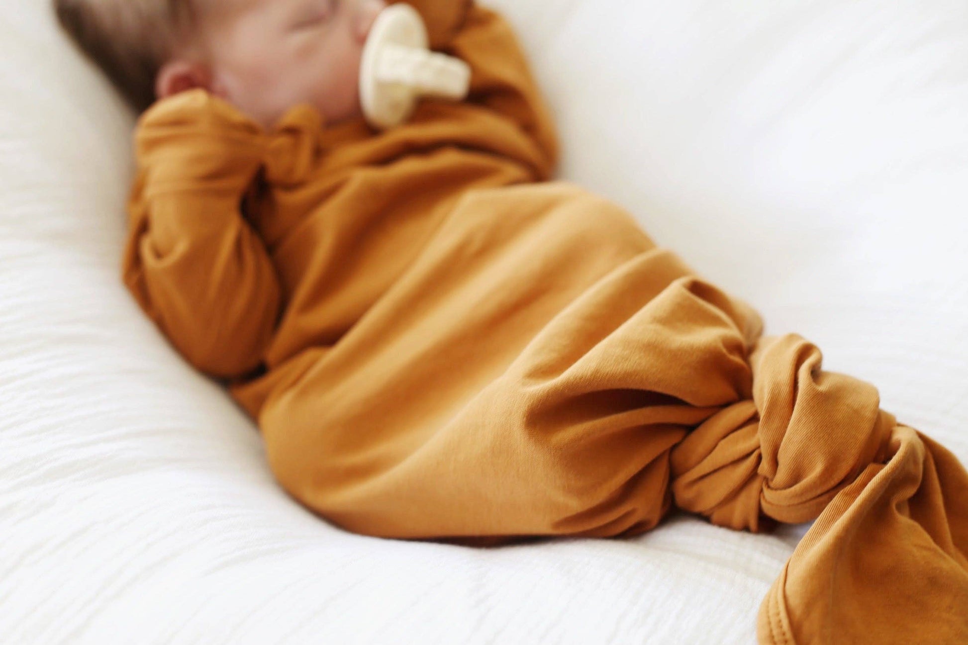 Designed to be soft and delicate on your baby’s skin and provide the perfect amount of stretch and comfort for your little one. The length of the knot is adjustable to allow your little one to grow with the gown.